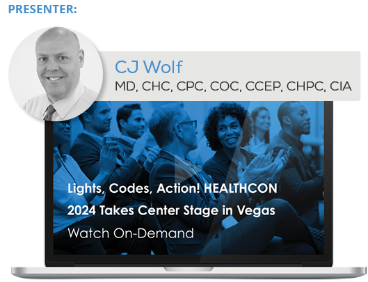 Presenter: CJ Wolf, MD, CHC, CPC, COC, CCEP, CHPC, CIA