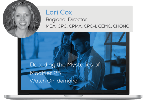 Which is why in this on-demand webinar, titled “Decoding the Mysteries of Modifier 25,” our resident expert, Lori Cox, looks at all of the rules, guidelines, and case studies to help you simplify the complex nature of this modifier through: